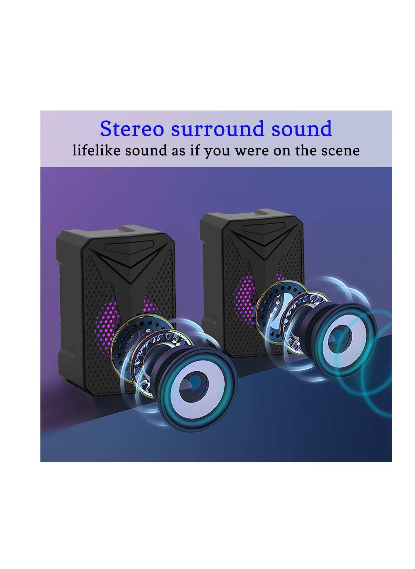 🔊 صوت ستيريو متوازن( 2.0): توازن ممتاز بين الصوت العالي والواضح والباس العميق.